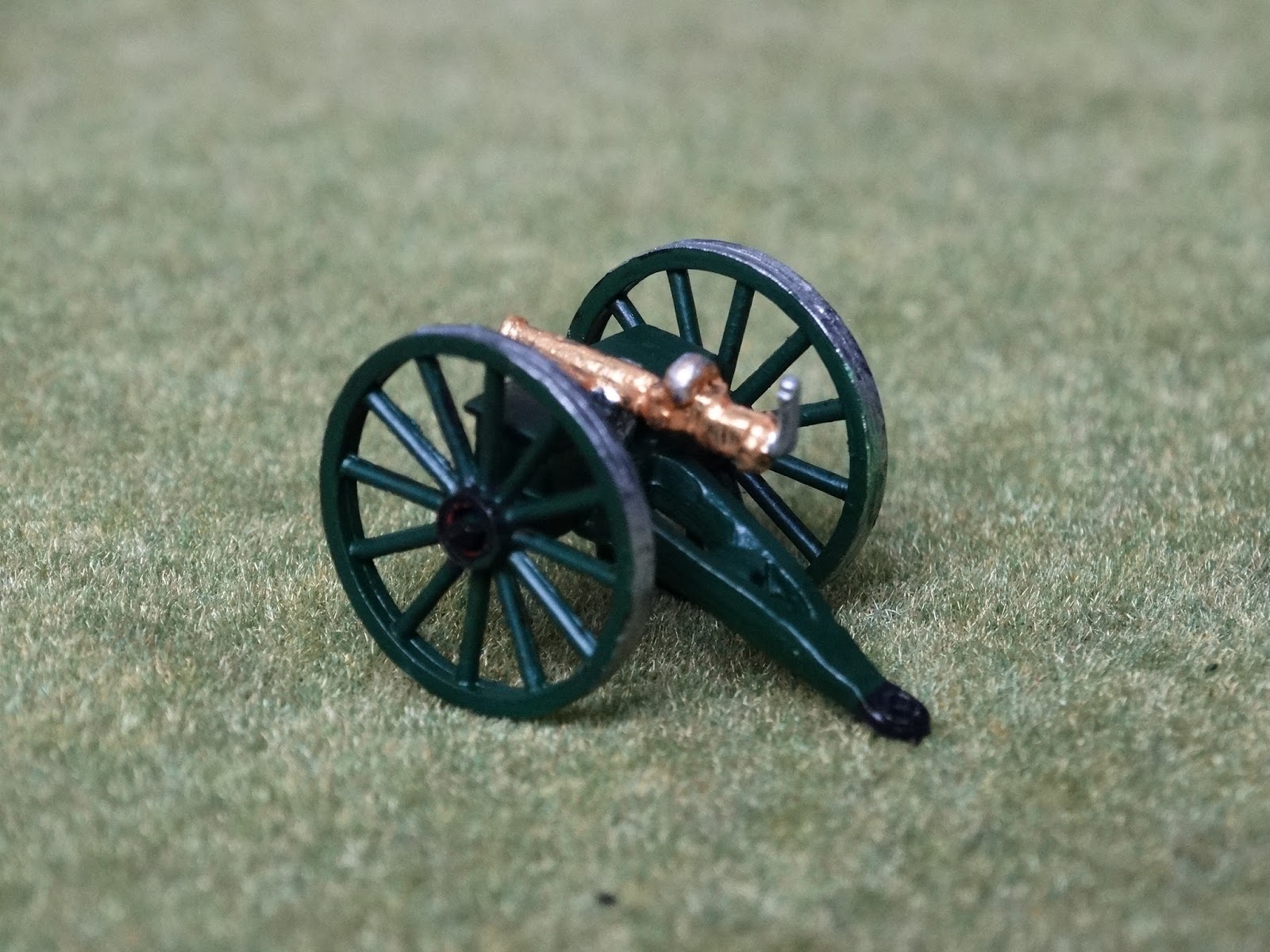 | Couldn't find any information on gun carriage colour - Museum pictures of guns show an apple green, but elsewhere I have seen them painted dark green. |
