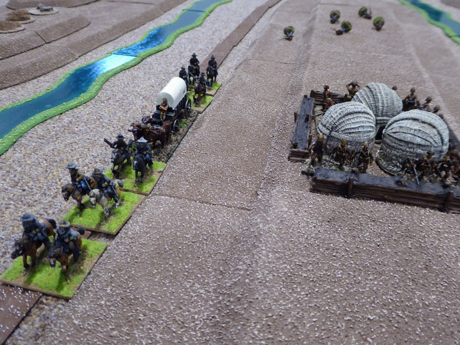 All natives and civilians were secured in the camp. The existing trench was narrowed and deepened to 3'6" with a parapet 12" high and an area hollowed out to give some overhead cover. All looked well for the fight.